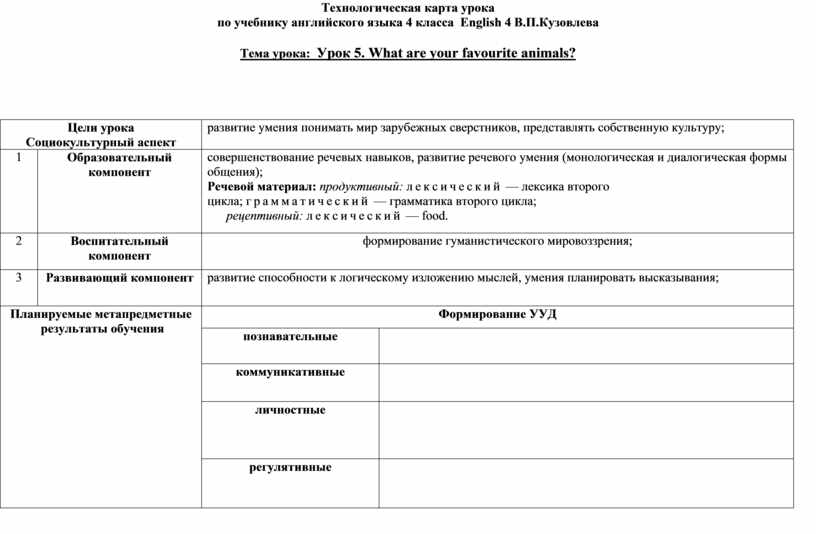 развитие умения читать с извлечением конкретной информации и полным пониманием прочитанного, развитие умения представить информацию в форме, отличной от первоначального вида; совершенствование навыка определять значение слов по словообразованию (по известным составляющим сложных слов), по аналогии с родным языком; Речевой материал: рецептивный: лексический — another, clay, a door, other, paper (to guess, furry, bright, dark, soft (Книга для чтения);грамматический — степени сравнения прилагательных. |