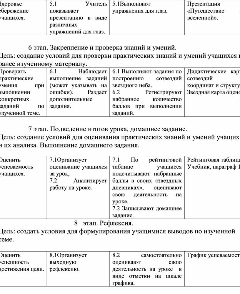 6.1 Выполняют задания по построению созвездий звездного неба. 6.2 Регистрируют набранное количество баллов при выполнении заданий. |