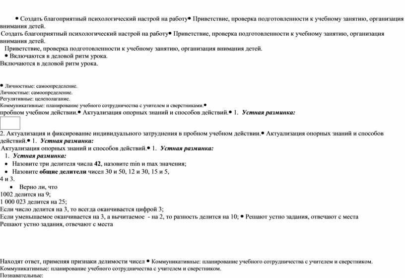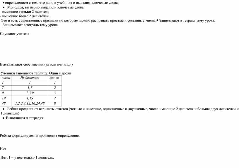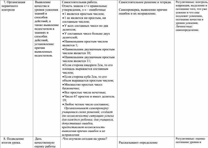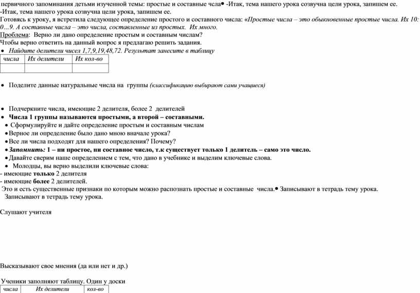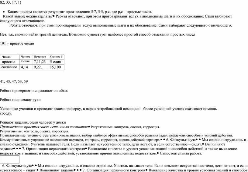 Технологическая карта урока математики по теме «Простые и составные числа»