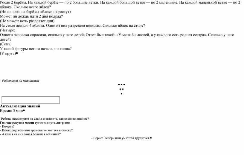 -Ребята, посмотрите на слайд и скажите, какое слово лишнее? Год час секунда месяц сутки минута литр век - Почему? - Каких еще величин времени не хватает в списке? - А какая из них самая большая величина? - Верно! Теперь наш ум готов трудиться. |