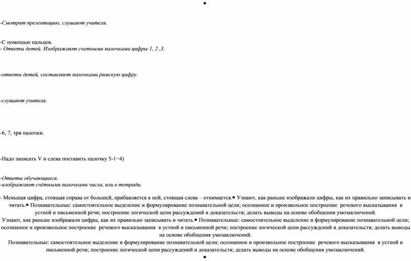 - Римские цифры. -Познакомиться со строением цифр. -Ответы детей. -Перечисляют римские цифры. |