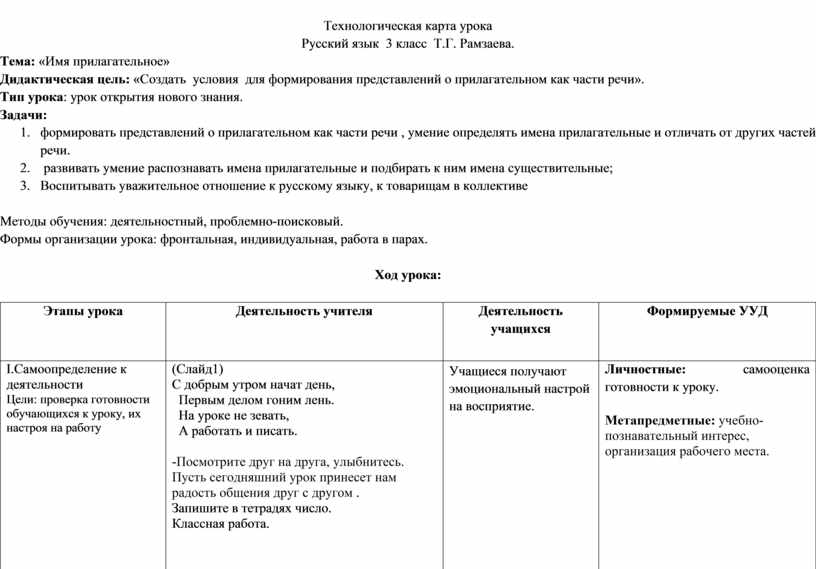 Технологическая карта урока