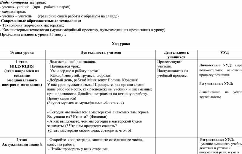ТЕХНОЛОГИЧЕСКАЯ КАРТА УРОКА