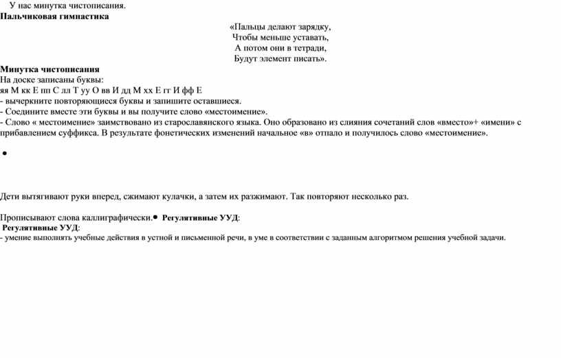 Образовательные: систематизировать представления учащихся о местоимении как части речи, формировать умение находить местоимения, отличать их от других частей речи, умение употреблять местоимения в речи; формировать навык правильного и каллиграфически грамотного письма;