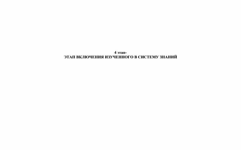 4 этап- ЭТАП ВКЛЮЧЕНИЯ ИЗУЧЕННОГО В СИСТЕМУ ЗНАНИЙ