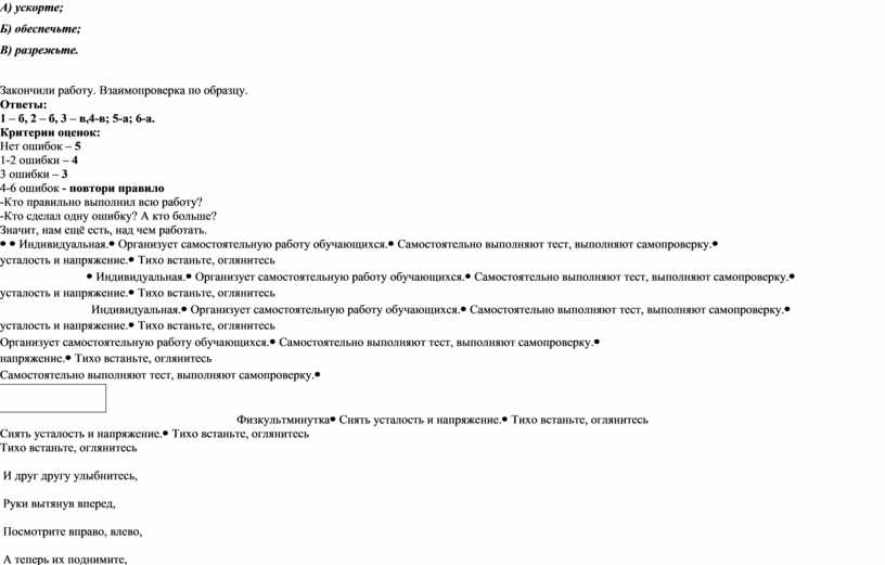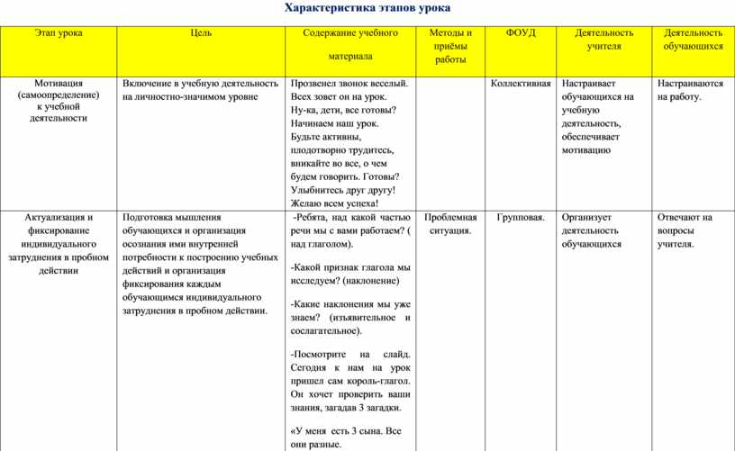 Характеристика этапов урока