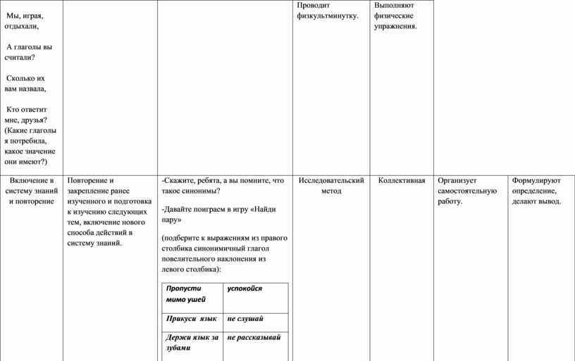 -Скажите, ребята, а вы помните, что такое синонимы? -Давайте поиграем в игру «Найди пару» (подберите к выражениям из правого столбика синонимичный глагол повелительного наклонения из левого столбика):