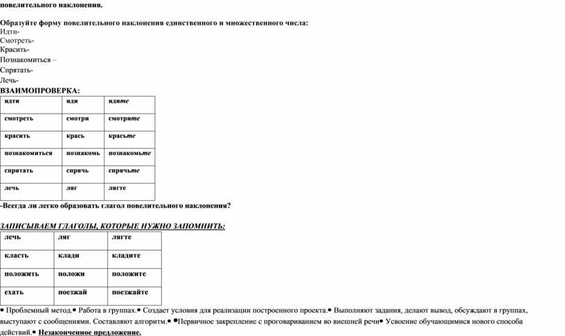 Цель урока: совместно с обучающимися выяснить, какие глаголы относятся к повелительному наклонению, как образуются глаголы повелительного наклонения и какие орфограммы могут быть в глаголах повелительного наклонения .