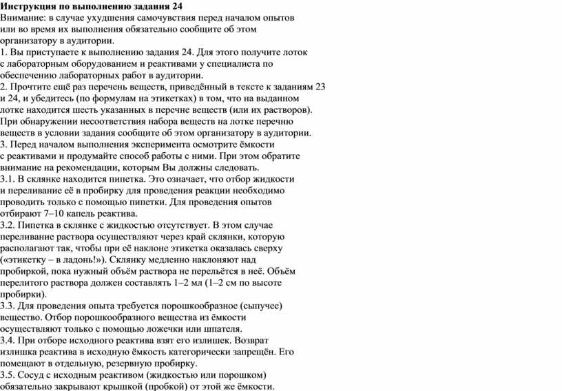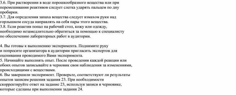 веществ в условии задания сообщите об этом организатору в аудитории.
