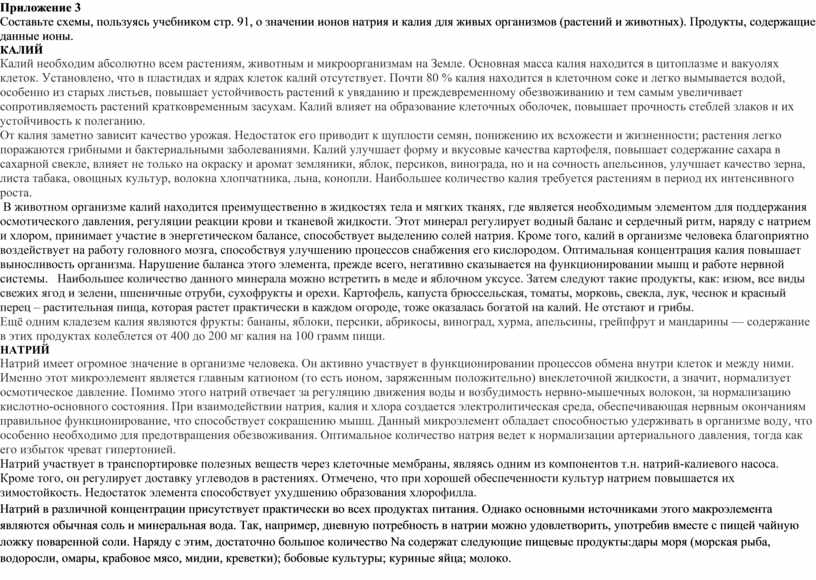 Составьте схемы, пользуясь учебником стр. 91, о значении ионов натрия и калия для живых организмов (растений и животных). Продукты, содержащие данные ионы.