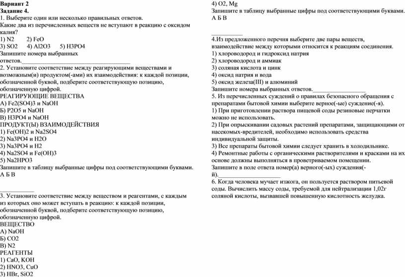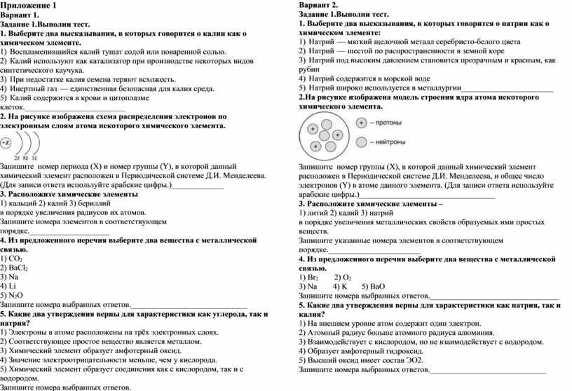 1. Выберите два высказывания, в которых говорится о калии как о химическом элементе.
