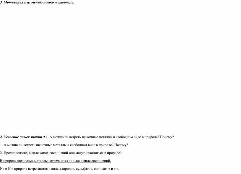 · формирование представления о соединениях щелочных металлов, их физических и химических свойствах, областях применения и значении для организма