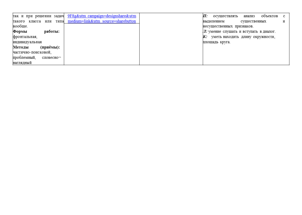 Тема урока | Длина окружности и площадь круга (1-й урок по теме) | ||