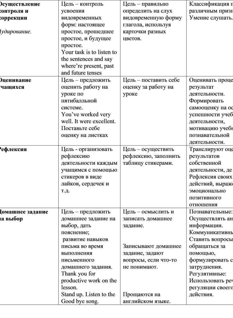 Цель – предложить домашнее задание на выбор, дать пояснение; развитие навыков письма во время выполнения письменного домашнего задания. Thank you for productive work on the lesson. Stand up. Listen to the Good bye song. |