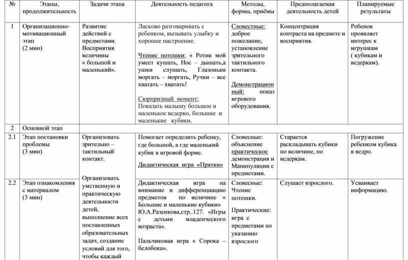 Планируемый результат занятия: ребенок узнает кубики, играет с ними в свободной игре.