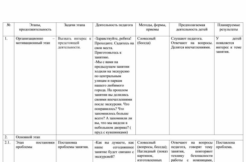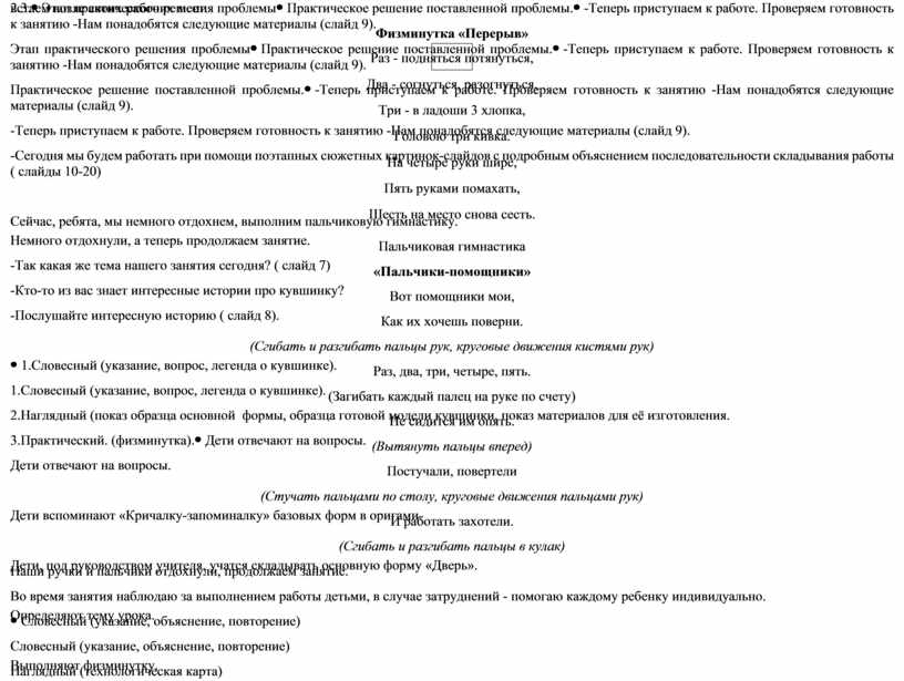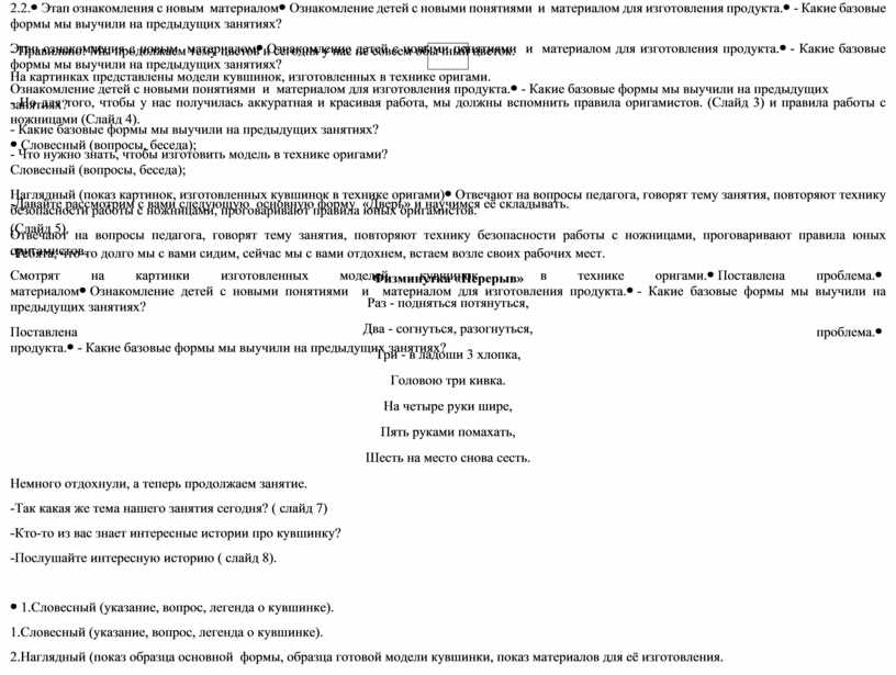 Технологическая карта занятия по оригами
