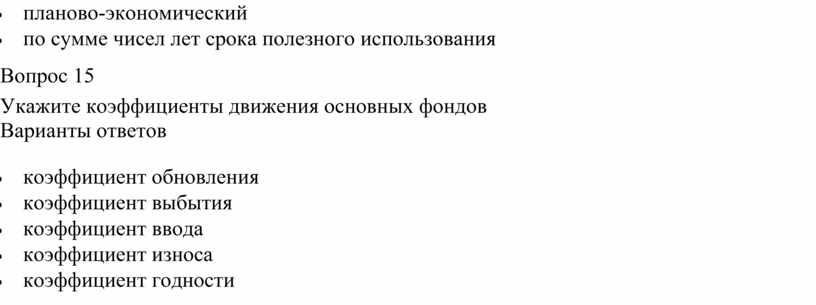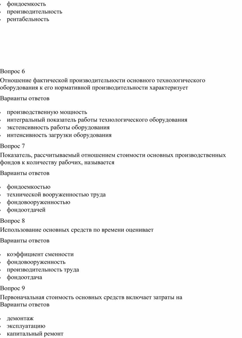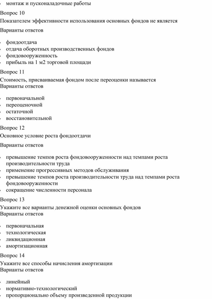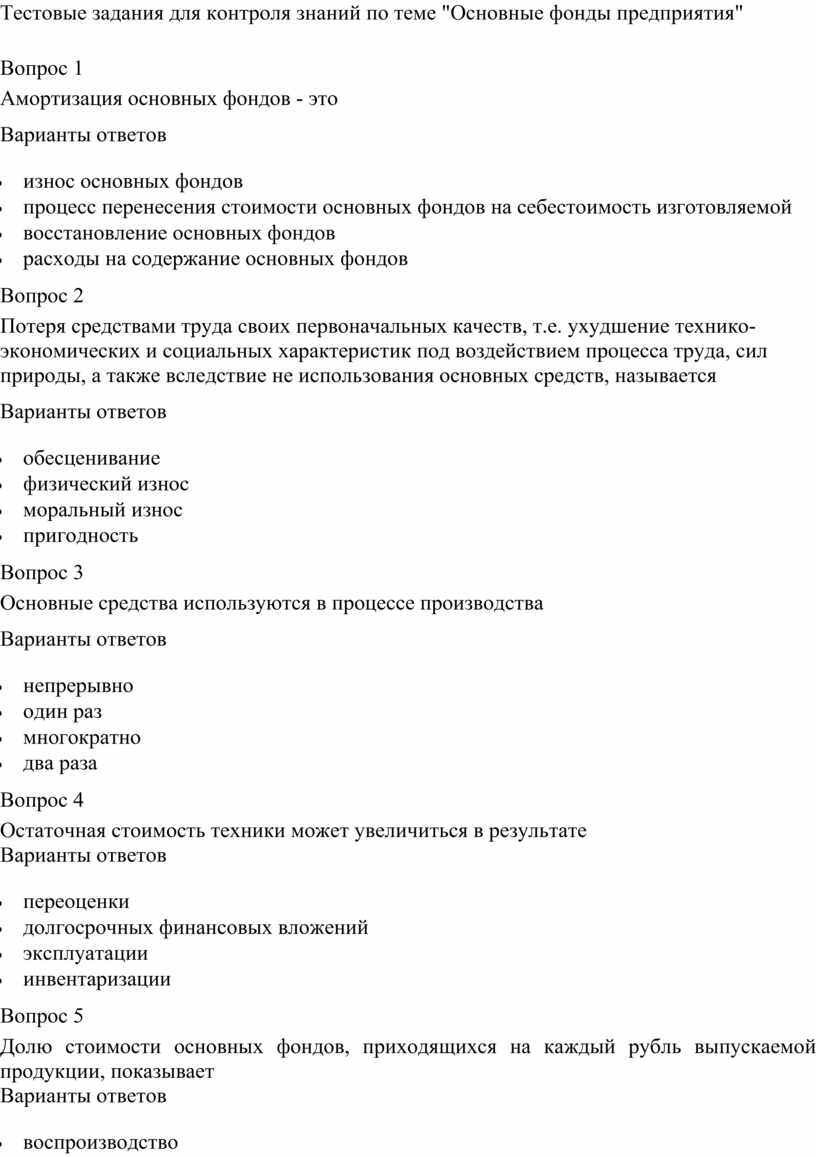 Тестовые задания для контроля знаний по теме "Основные фонды предприятия"