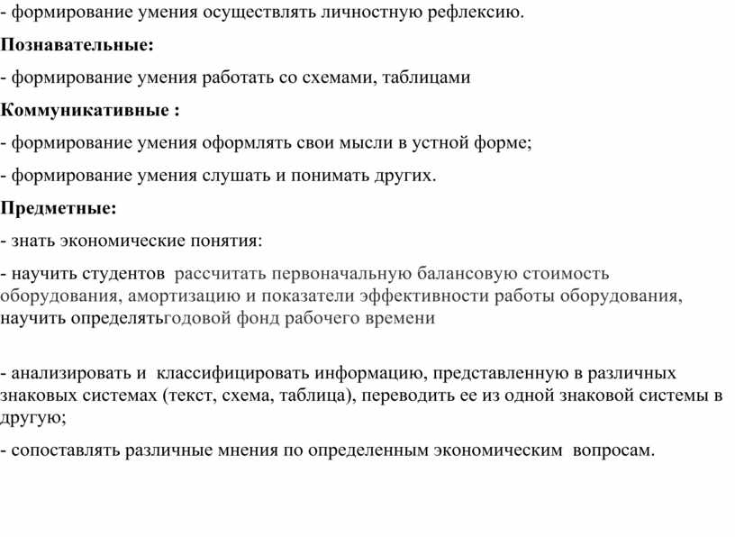 - научить студентов рассчитать первоначальную балансовую стоимость оборудования, амортизацию и показатели эффективности работы оборудования, научить определятьгодовой фонд рабочего времени