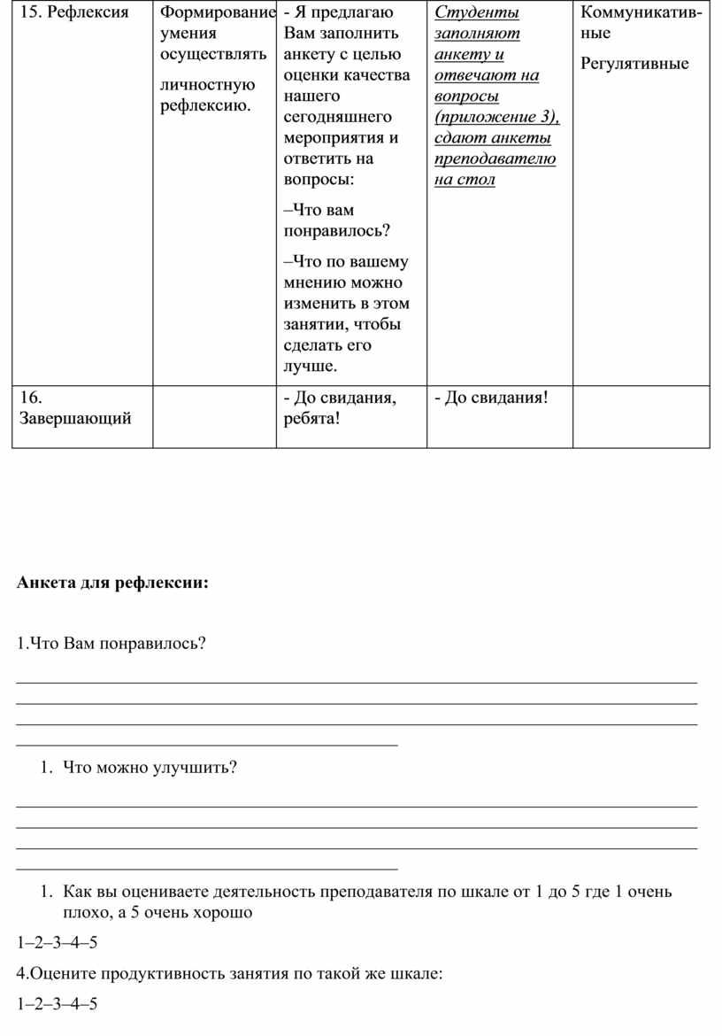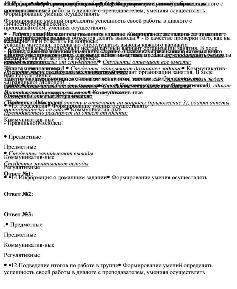 Формирование умений определять успешность своей работы в диалоге с преподавателем, формирование умения на основе анализа объектов делать выводы, умения слушать и понимать других; |