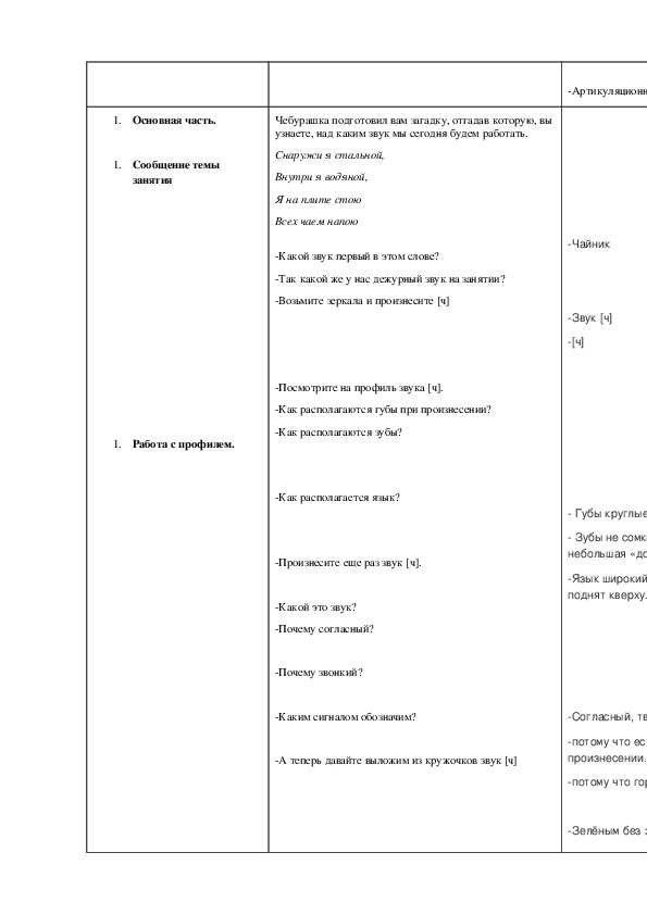 когда услышите звук [ч] покажите сигналом.
