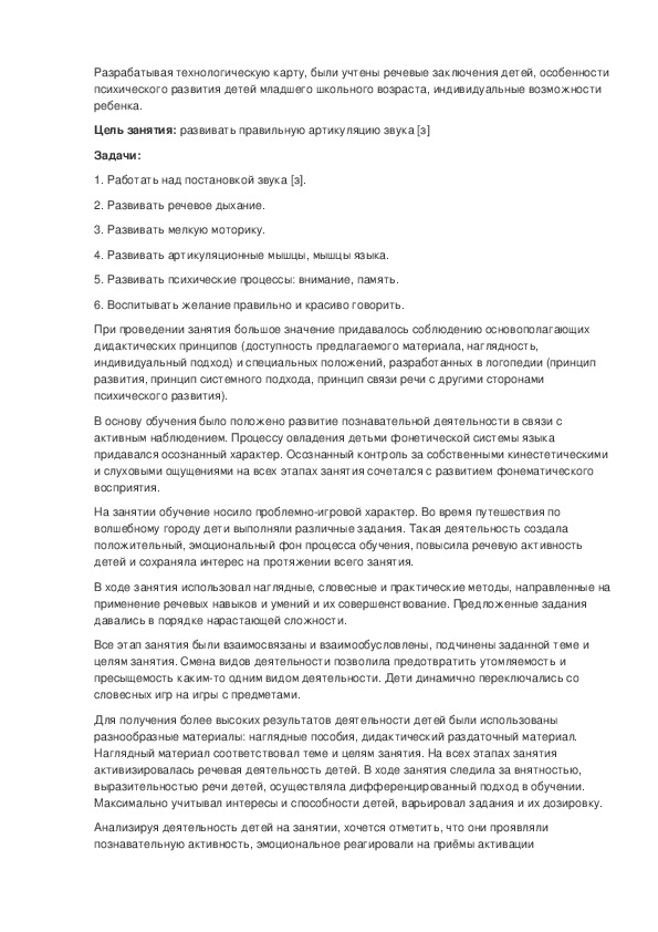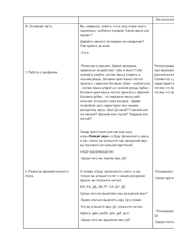 Данное занятие посвящено постановке звука [з]. Структура занятия отвечает развивающим