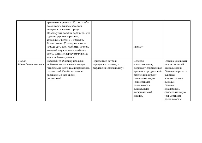 овладевают необходимыми умениями и навыками: умение изображать любимый уголок городаЦель