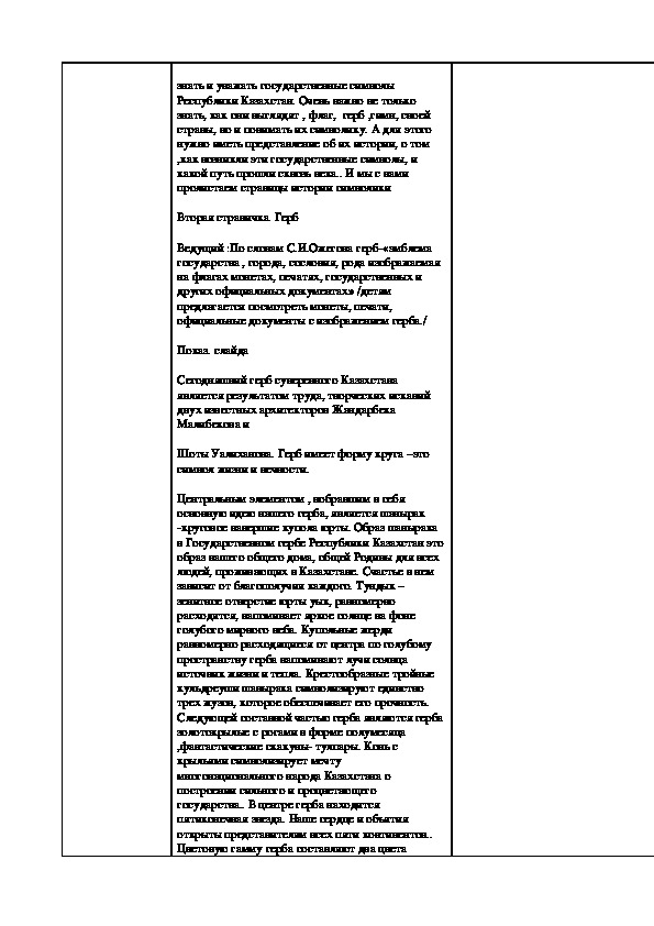 Мақсат /Цели/: Углубление знаний учащихся о символах Республики Казахстан Развивать
