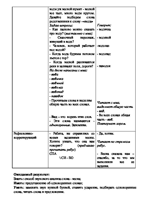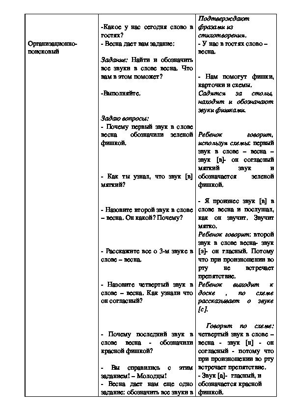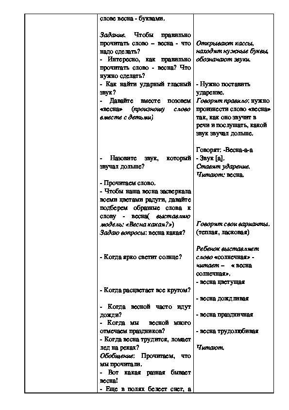 Цель: Закрепить способ звукового анализа слова – весна (способы определения