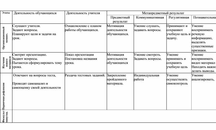 Технологическая карта урока