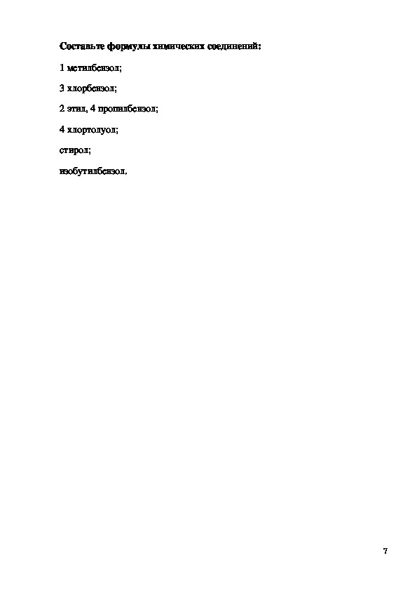 Повторить номенклатуру аренов, изомерию, способы получения;