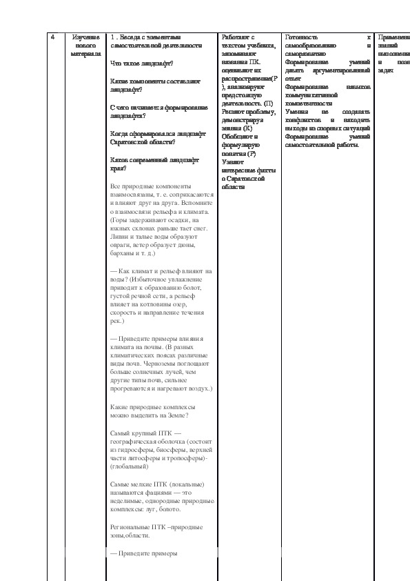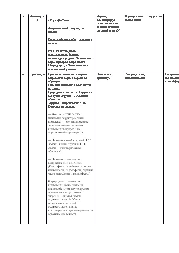 Цель: формирование учебно-познавательной и коммуникативной компетенций учащихся при изучении природных комплексов