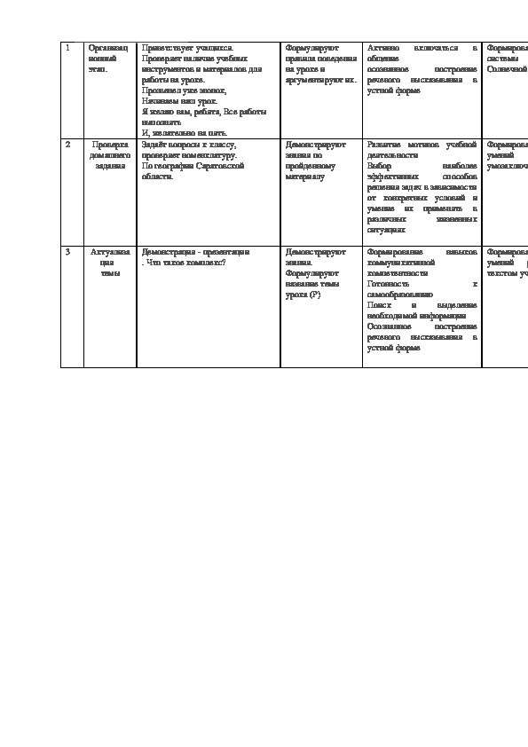 Технологическая карта урока географического краеведения в 6 классе с учетом требований ФГОС.