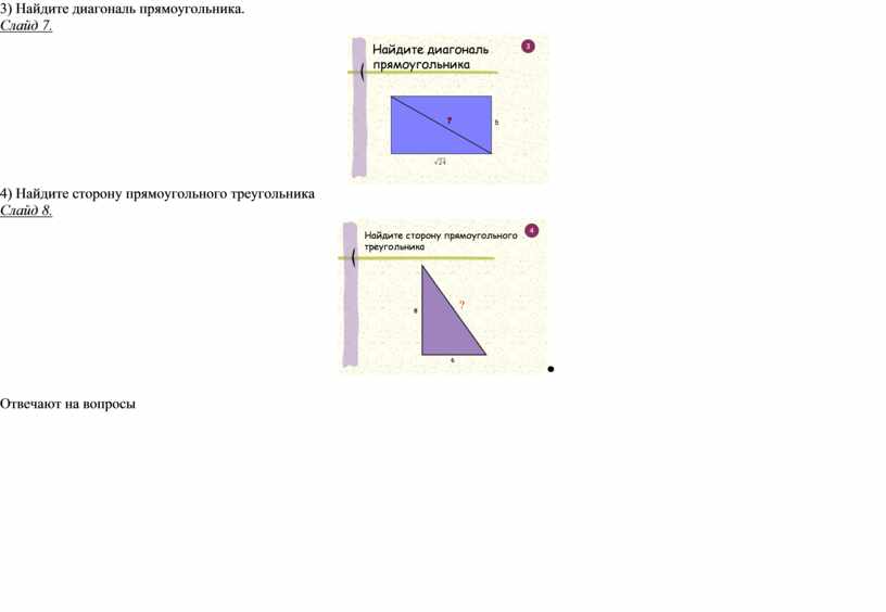 3) Найдите диагональ прямоугольника. Слайд 7.