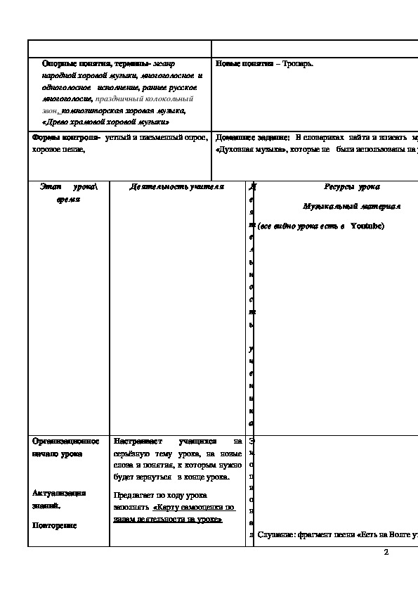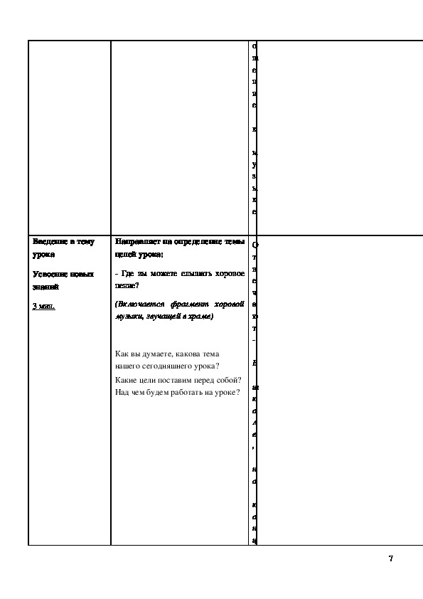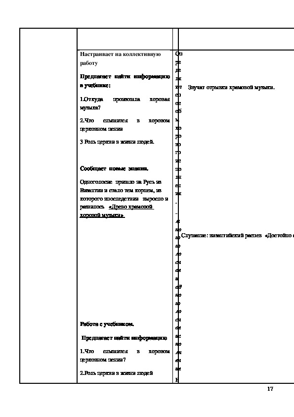 - развивать познавательный интерес учащихся,Технологическая карта урока "Хоровая музыка в храме" 5 класс