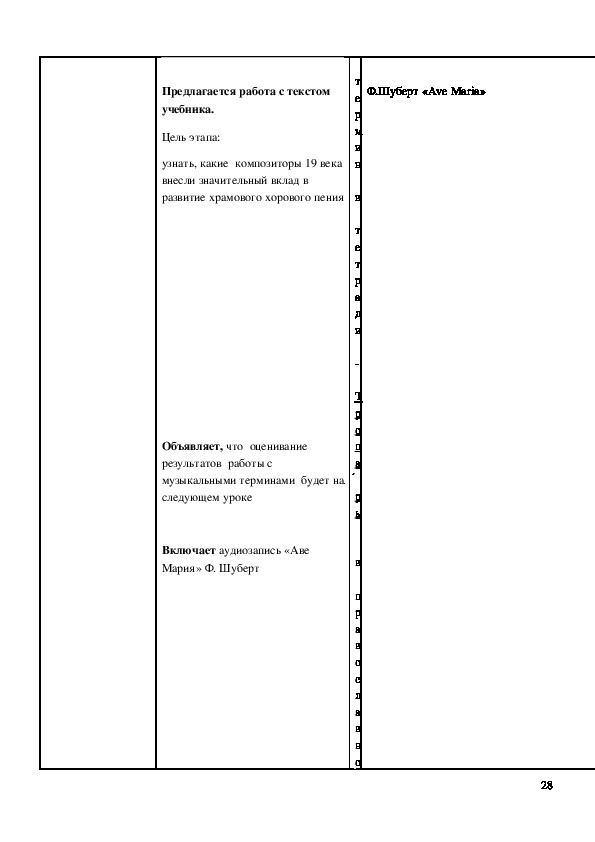 Технологическая карта урока музыки в 5 классе на тему: « Хоровая музыка в храме»