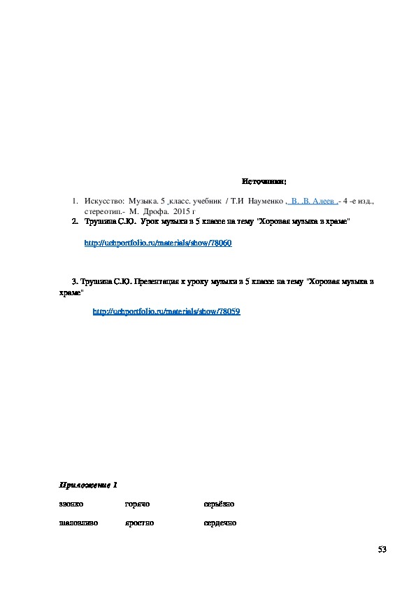 2. Трушина С.Ю. Урок музыки в 5 классе на тему "Хоровая музыка в храме"