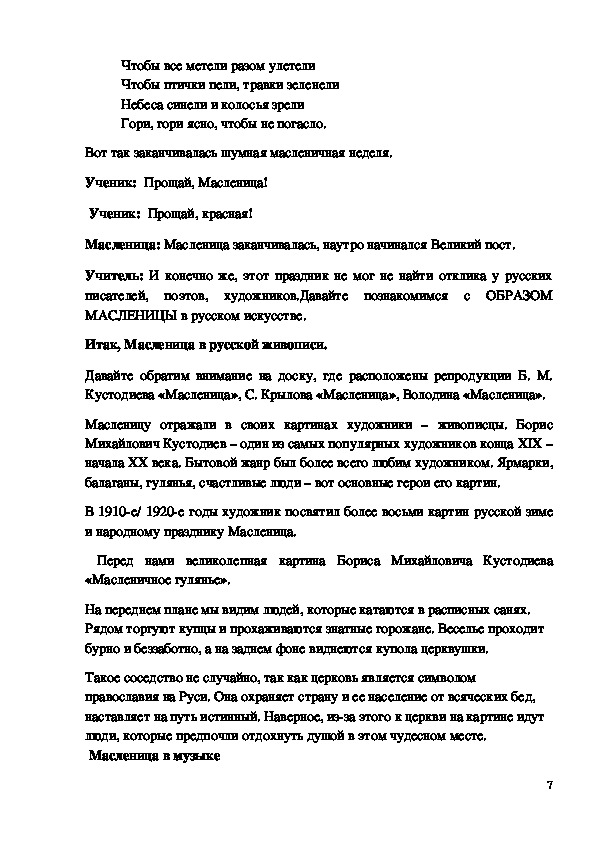 «Масленица», Володин «Масленица», рисунки учащихся, новые слова.