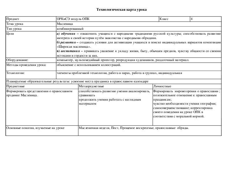 Цели а) обучения – ознакомить учащихся с народными традициями русской культуры; способствовать развитию интереса к своей истории путём знакомства с народными обрядами.
