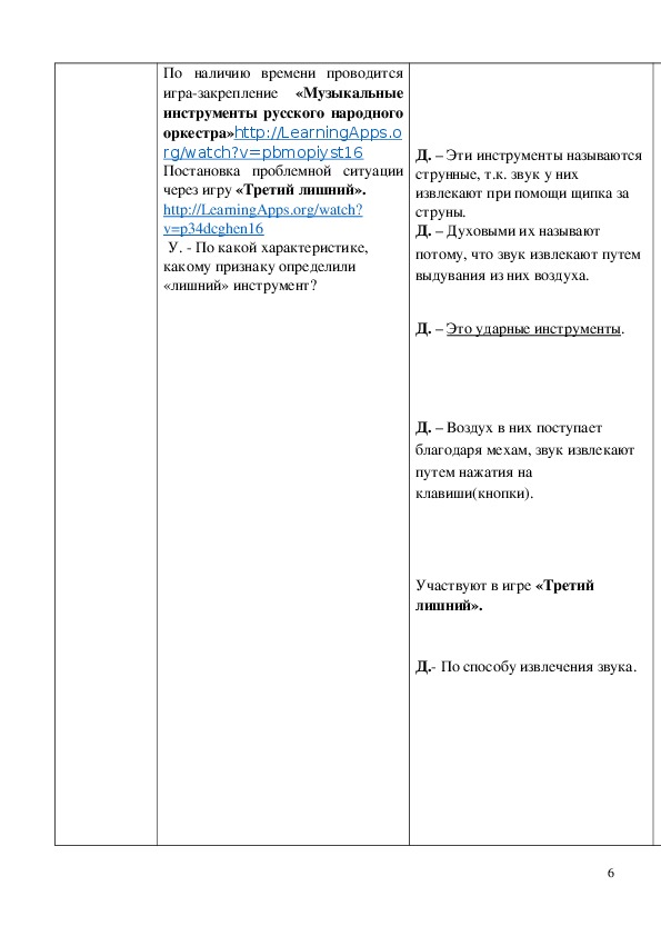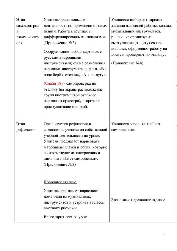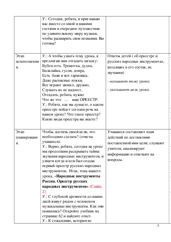 Технологическая карта урока "Оркестр русских народных инструментов" 4 класс.Технологическая карта урока