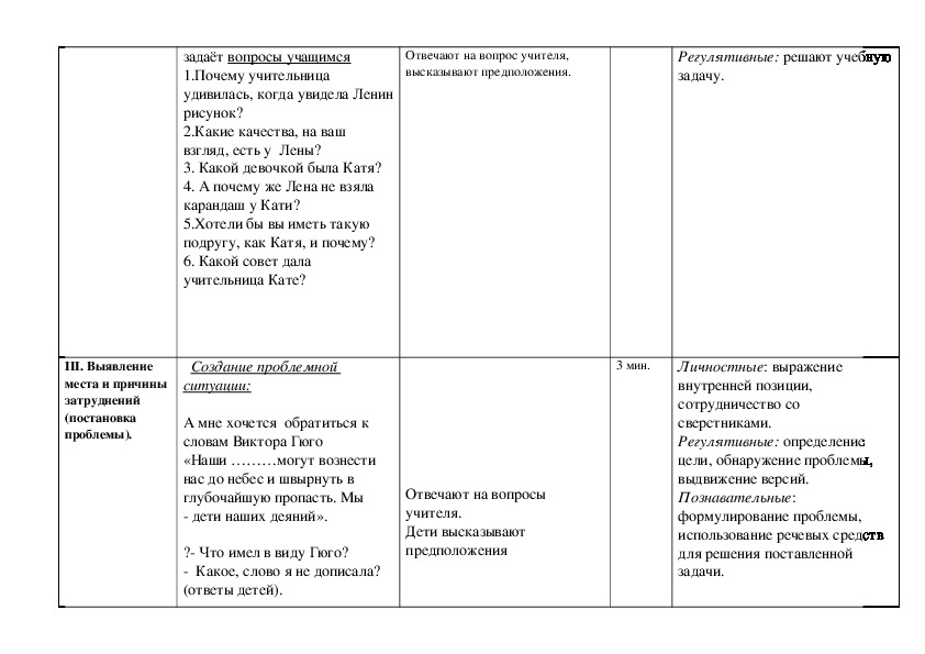 Регулятивные: планирование и осуществление учебных действий в соответствии с поставленной задачей.