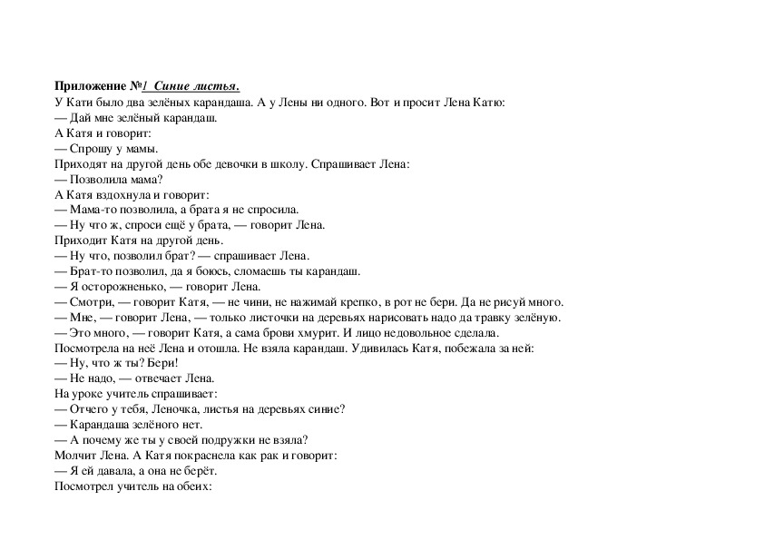 У Кати было два зелёных карандаша. А у Лены ни одного. Вот и просит Лена Катю: