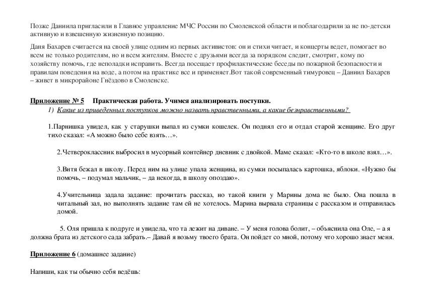 Приложение № 5 Практическая работа. Учимся анализировать поступки.