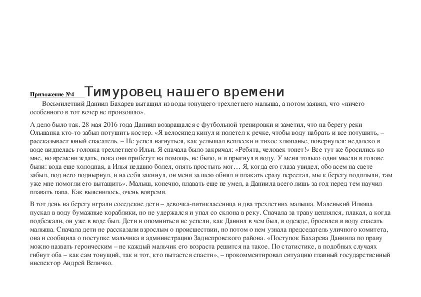 правилам поведения на воде, а потом на практике все и применяет.Вот такой современный тимуровец – Даниил Бахарев
