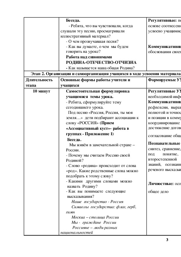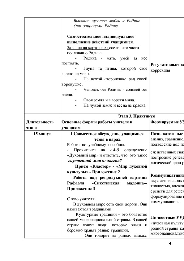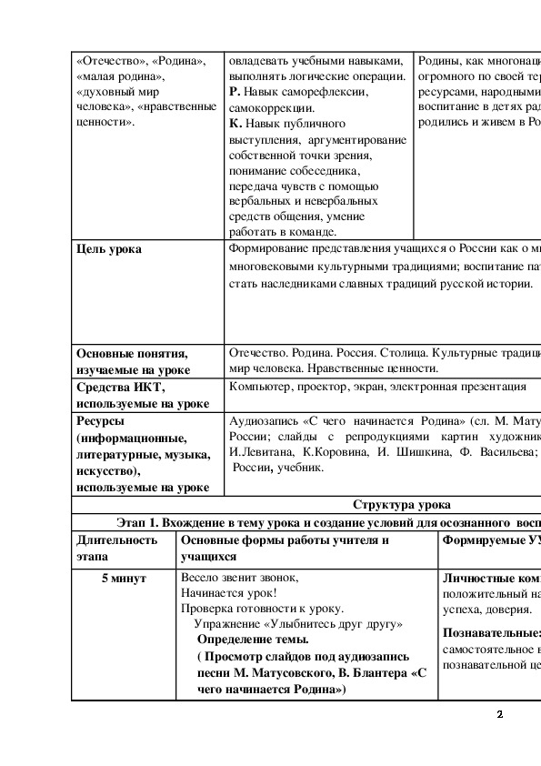 Усвоение понятий «Отечество», «Родина», «малая родина», «духовный мир человека», «нравственные ценности». П. Умение ставить задачи, овладевать учебными навыками, выполнять логические операции.