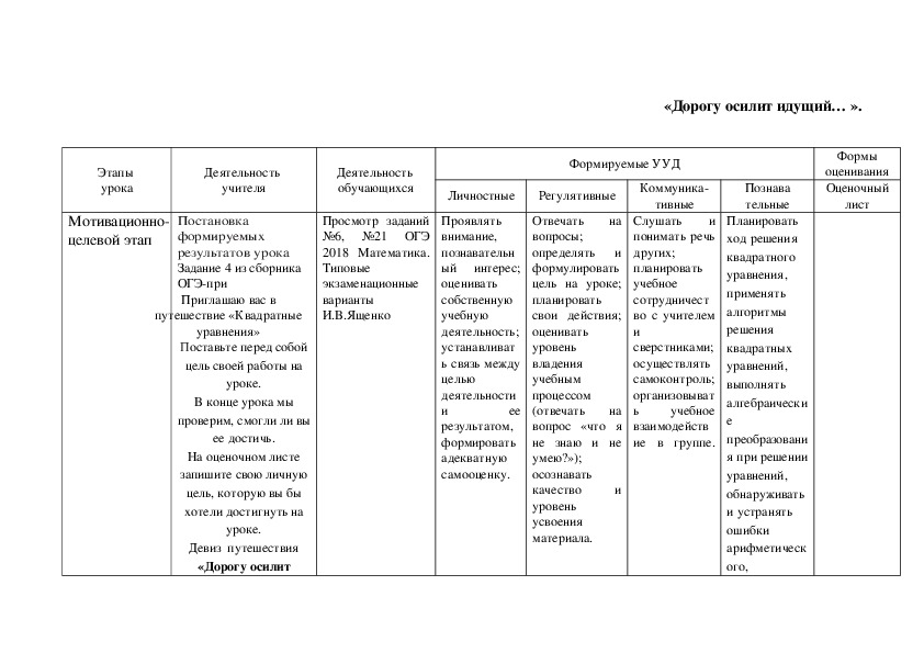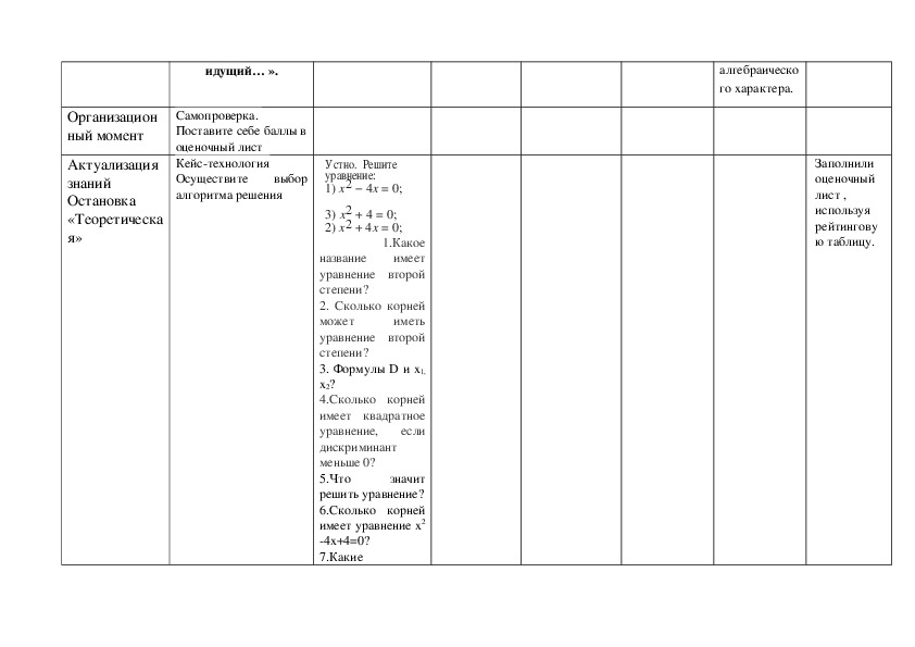 метапредметные: развивать понимание сущности алгоритмических предписаний и умение действовать в соответствии с предложенным алгоритмом.Технологическая карта урока. по теме "Решение квадратных уравнений" Математика 8класс.