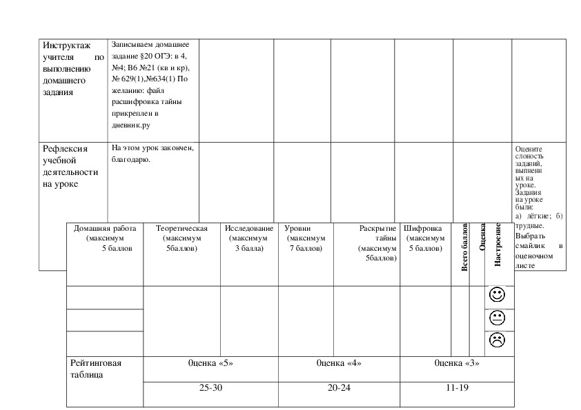 листеСамопроверка. Поставите себе баллы в оценочный лист Оценочный лист