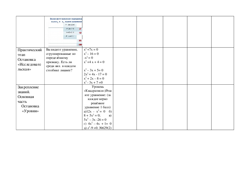 Технологическая карта урока по математике на тему "Решение квадратных уравнений" 8 класс по учебнику Ю.Н.Макарычева Тип урока - урок комплексного применения знаний и умений. Форма урока - урок-путешествие.