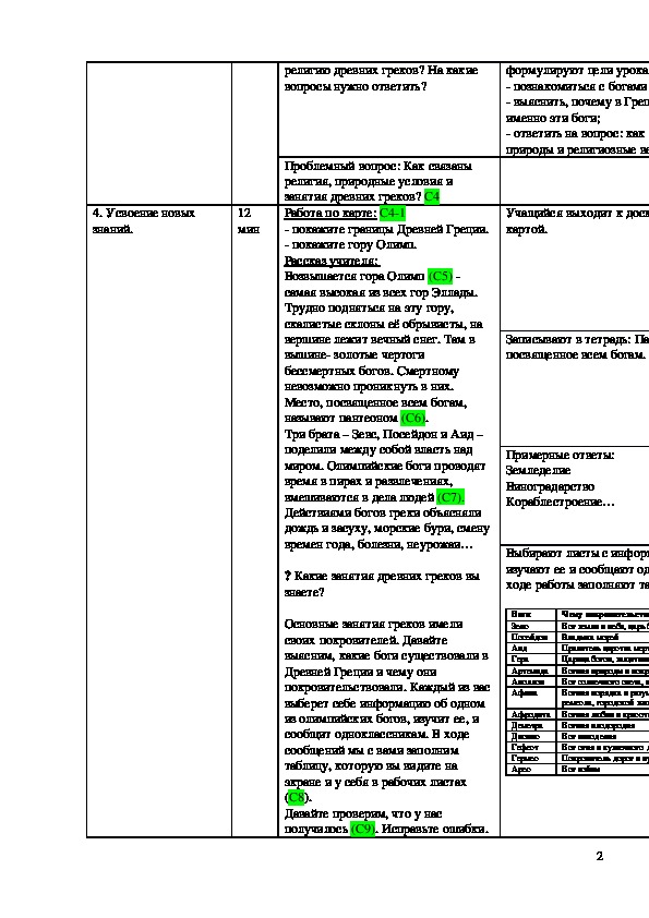 5.Формировать уважение, бережное отношение к религии и истории других стран.Технологическая карта урока "Религия древних греков" 5 класс