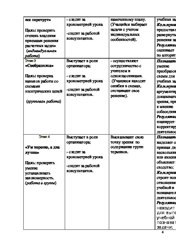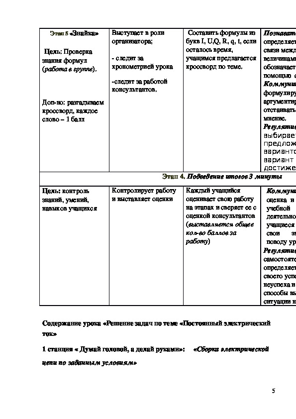 Технологическая карта урока Решение задач по теме «Постоянный