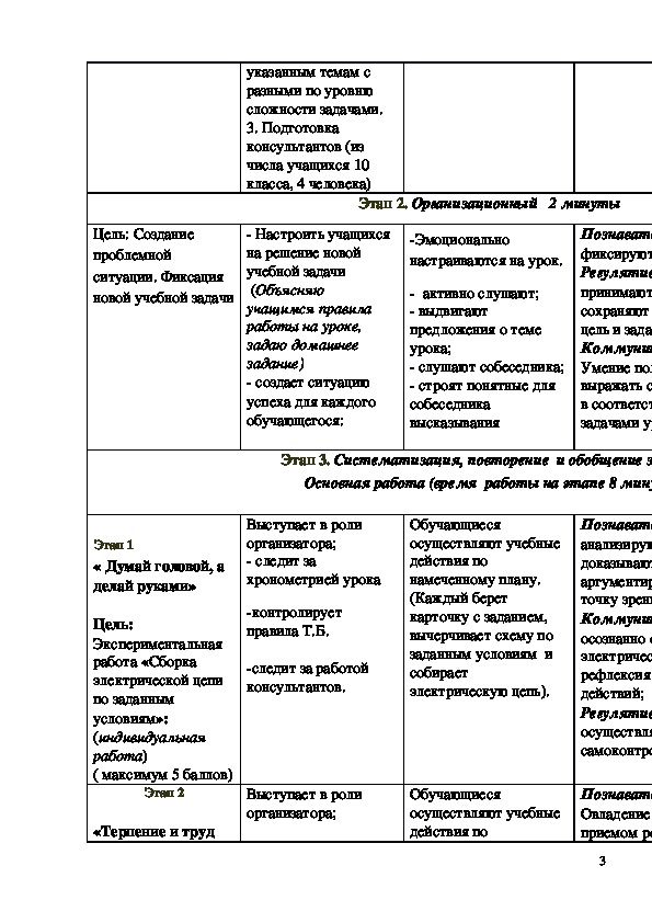 Этап 1. Подготовка к уроку систематизации и обобщения знаний